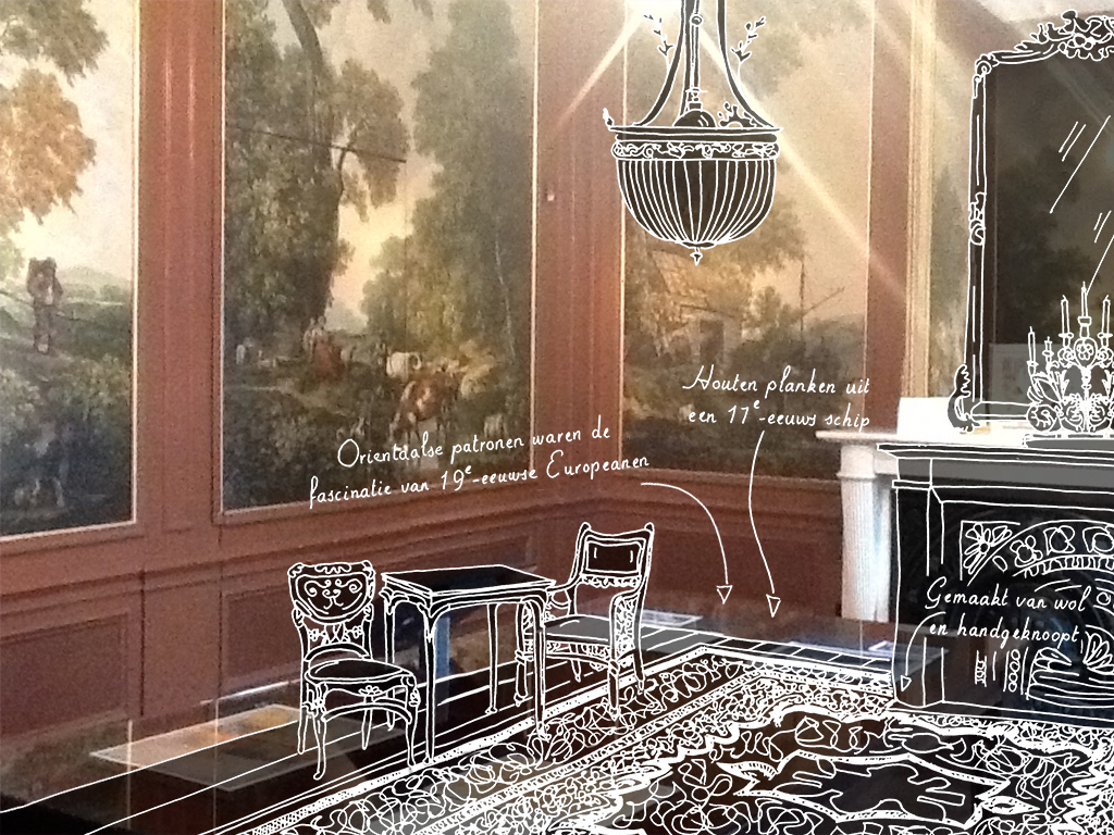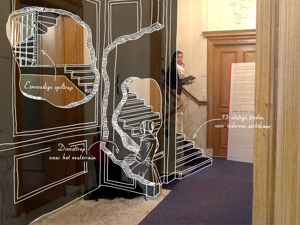 Via de camera in de iPad kijkt de bezoeker realtime de ruimte in. Verschillende illustraties die over het geregistreerde beeld heen gelegd worden wekken de historische vertrekken met hun oorspronkelijke bewoners tot leven. Ze nemen je mee in een reis door de tijd.