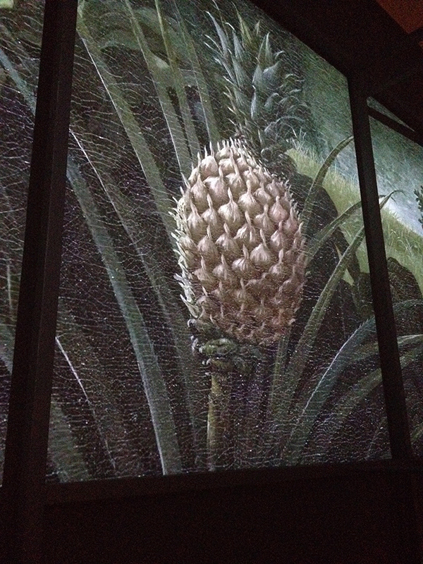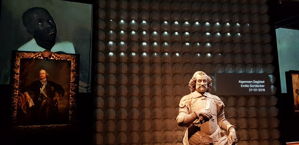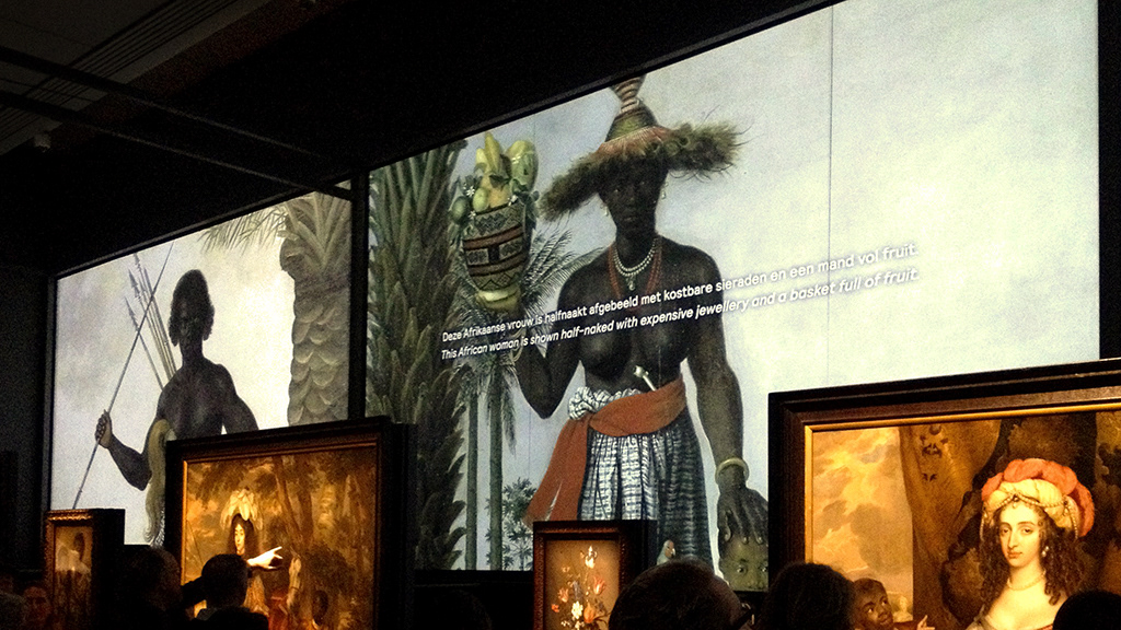 Wandprojectie; een steeds transformerende achtergrond/wandtapijt van in totaal zo'n 28 meter lang, doorlopend over 3 wanden, vertelt het verhaal van het leven van Johan Maurits aan de hand van biografische feiten, oude prenten en schilderijen die elkaar afwisselen. Naast dat het de setting the scene is van de zaal, vraagt het de bezoeker zijn mening te creëren over Johan Maurits en zijn slavernijverleden door de combinatie van beeld en tekst.