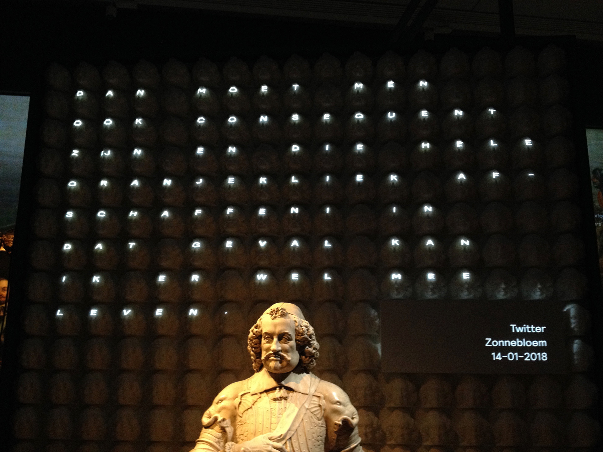 Twitter Wand videomapping; een projectie/animatie van verschillende twitter teksten en krantenkoppen geprojecteerd op een wand met miniatuur hoofden van de buste van Johan Maurits. Op ieder voorhoofd verscheen een losse letter die tezamen een tekst vormden.